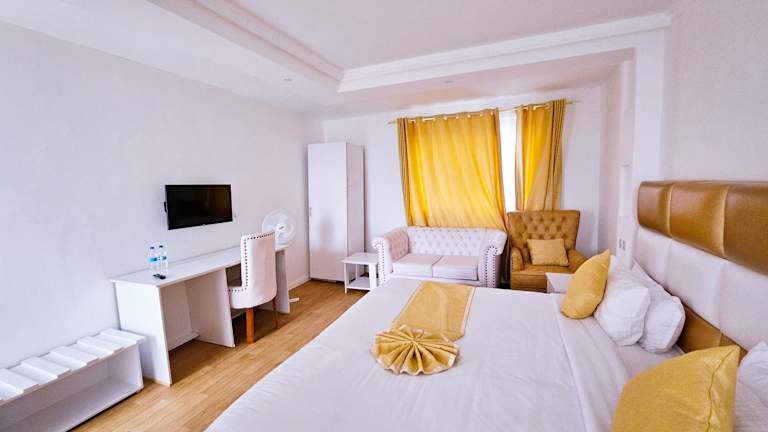 Die Zimmer sind mit einem Balkon ausgestattet und verfügen über ein eigenes Badezimmer mit Dusche sowie kostenlosen Pflegeprodukten. Einige Zimmer verfügen zusätzlich über eine Küche. Die Zimmer sind mit Bettwäsche und Handtüchern ausgestattet.