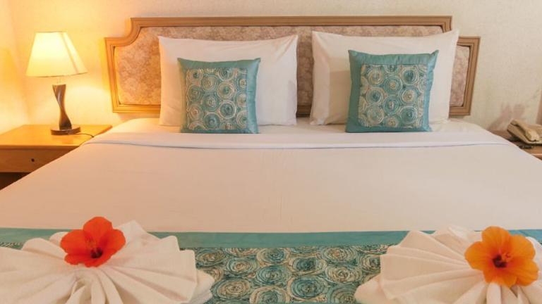 Die klimatisierten Zimmer sind mit einem Balkon ausgestattet, der Blick auf den Pool möglich ist. Zur Standardausstattung gehören ein Doppelbett oder Kingsize-Bett, Kühlschrank, Minibar und Schreibtisch. Zudem stehen ein TV mit Kabelkanälen sowie WLAN ohne Gebühr zur Verfügung. Die Badezimmer sind sowohl mit einer Dusche als auch mit einer Badewanne ausgestattet und bieten Kosmetikartikel. Zustellbetten sind gegen Gebühr erhältlich.