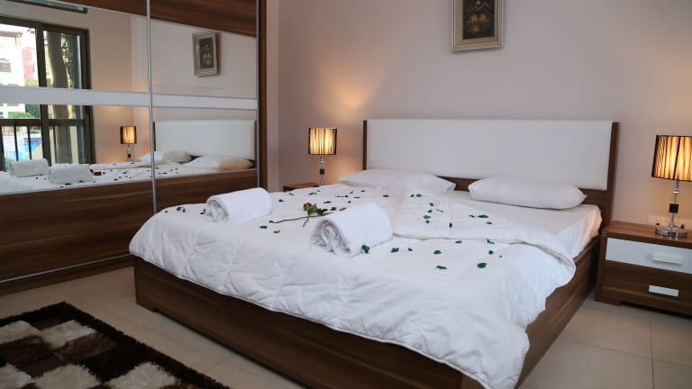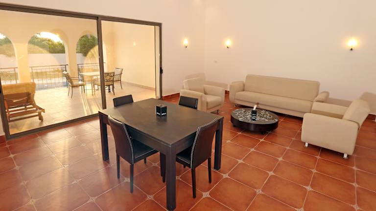 Die Zimmer sind mit einem Wohnbereich, einer Küche und einem Badezimmer ausgestattet. Sie verfügen über eine individuell steuerbare Klimaanlage, einen Balkon oder eine Terrasse mit Blick auf den Pool, ein Kingsizebett sowie ein Sofabett. Zu der Ausstattung gehören ein Kühlschrank, eine Tee-/Kaffeemaschine, eine Waschmaschine und ein Bügelset. Die Badezimmer sind mit einer Dusche ausgestattet und bieten Kosmetikartikel sowie eine Auswahl an Handtüchern. Alle Zimmer sind als Nichtraucher- oder Raucherzimmer buchbar.