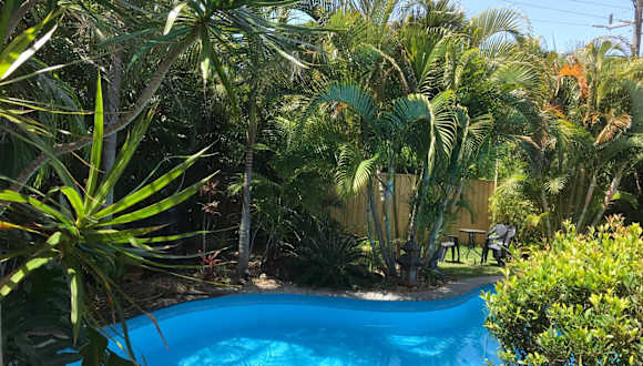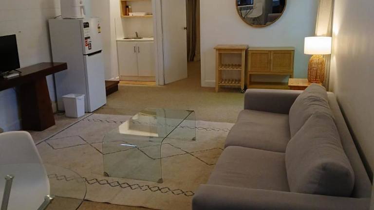Das Motel bietet selbstständige Zimmer, von denen die meisten über eine kleine Sonnenveranda mit Sitzgelegenheit verfügen. Es gibt auch eine sicher eingezäunte hundefreundliche Unterkunft. Zu den Annehmlichkeiten gehören ein Aussenpool mit Magnesiumwasser, umgeben von Palmen und Liegestühlen, sowie ruhige Ecken in den üppigen Gärten, ideal zum Entspannen.