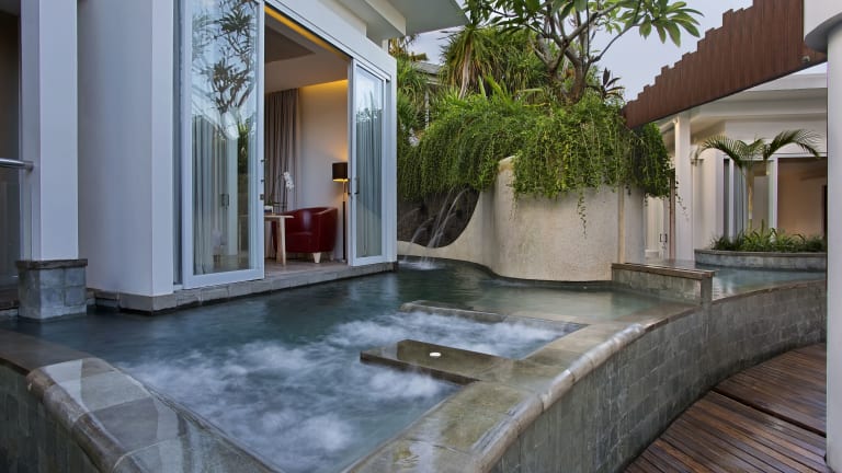 Die Unterkunft befindet sich im Zentrum von Seminyak, nur 10 Gehminuten vom Strand entfernt. In der Umgebung sind zahlreiche Boutiquen und Restaurants zu finden. Der internationale Flughafen Denpasar ist in etwa 20 Minuten mit dem Auto erreichbar.