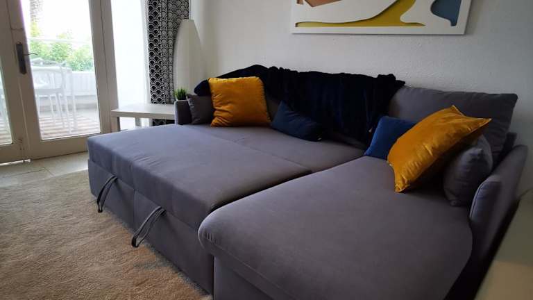 Die Ferienwohnung verfügt über 1 Schlafzimmer und ein Wohnzimmer. Eine voll ausgestattete Küche mit Kühlschrank und Kaffeemaschine ist vorhanden. Zudem gibt es 1 Badezimmer mit Dusche und Haartrockner. Handtücher und Bettwäsche werden bereitgestellt.