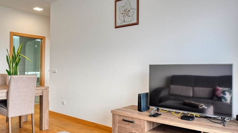 Die Ferienwohnung verfügt über ein Schlafzimmer und ein Badezimmer. Zur Ausstattung gehören Bettwäsche, Handtücher, ein TV mit Satellitenkanälen sowie eine voll ausgestattete Küche. Ein Balkon mit wunderschönem Meerblick gehört ebenfalls zur Unterkunft.