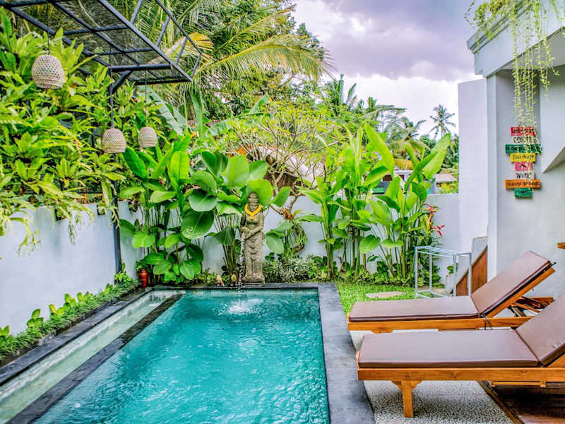 Die Tamyang Ubud Villas bieten eine ideale Lage, nur 2 km vom Palast von Ubud entfernt, und sind ein perfektes Ziel für einen entspannten Urlaub. Mit einem Außenpool, einem schönen Garten und komfortablen, klimatisierten Unterkünften mit Balkon und kostenfreiem WLAN werden Sie sich hier wie zu Hause fühlen. Genießen Sie Ihr Frühstück auf der Terrasse mit Blick auf den Pool oder den Garten und erkunden Sie die Umgebung mit dem Fahrrad oder dem Mietwagen, den Sie in der Unterkunft erhalten können.