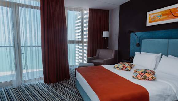 Das Hotel befindet sich direkt am Strand in Batumi. Die Umgebung hat eine Vielzahl von Geschäften, die zum Schlendern einladen. Die Lage bietet zudem Zugang zu verschiedenen Freizeitmöglichkeiten.