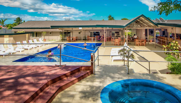Im Gordy's Country Diner können Sie Fast-Food-Gerichte sowie fidschanische und indische Küche genießen. Die Cu Bar bietet eine Auswahl an Cocktails und veranstaltet regelmäßig Karaoke-Abende. Hier können Sie auch internationale Sportkanäle auf einem großen Bildschirm verfolgen.