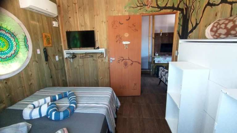 Die Zimmer im Tapera Florianópolis sind einfach und komfortabel. Sie bieten kostenfreies WLAN und Zugang zu einem Gemeinschaftsbad mit Dusche. Das Hostel verfügt auch über Familienzimmer, die ideal für Reisende mit Kindern oder größeren Gruppen sind.