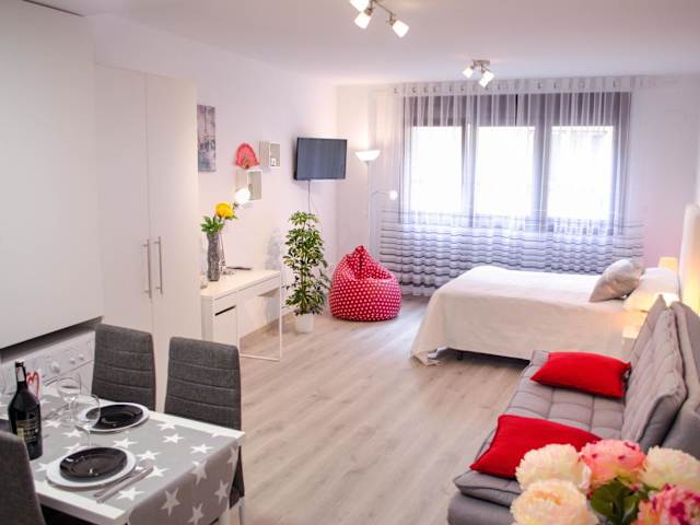 Die Unterkunft besteht aus einer klimatisierten Ferienwohnung, die mit einem Schlafzimmer und einem Badezimmer ausgestattet ist. Das Badezimmer enthält ein Bidet, eine Dusche und einen Haartrockner. Ein geräumiger Sitzbereich und Essbereich stehen zur Verfügung. Die vollständig ausgestattete Küchenzeile beinhaltet einen Kühlschrank, einen Ofen und eine Mikrowelle. Schallisolierte Zimmer sind ebenfalls vorhanden.