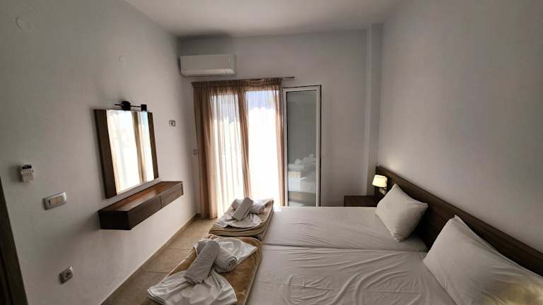 Tarra Rooms and Apartments bietet klimatisierte Zimmer und mehrere Wohneinheiten, darunter auch solche mit Terrasse und Blick auf die Berge. Jedes Zimmer ist mit einem Balkon ausgestattet und verfügt über ein eigenes Badezimmer mit Dusche sowie Haartrockner. Einige Zimmer bieten den Gästen einen Blick auf das Meer.