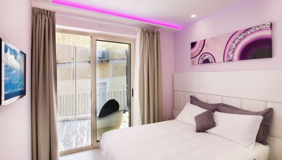Die Zimmer im Tasso Suites zeichnen sich durch ein angenehmes Raumklima aus, das durch Klimaanlage und Heizung gewährleistet wird. Sie bieten einen Balkon oder eine Terrasse mit Stadtblick und sind mit einem Queensizebett sowie einem Sofabett ausgestattet. Sicherheitsmerkmale wie ein Safe und ein Schreibtisch sind vorhanden. Zur Ausstattung der Zimmer gehören zudem eine Minibar, ein Kühlschrank, eine Tee-/Kaffeemaschine und ein Bügelset. Die Badezimmer sind mit Dusche, Bidet und Haartrockner ausgestattet und bieten Kosmetikartikel.