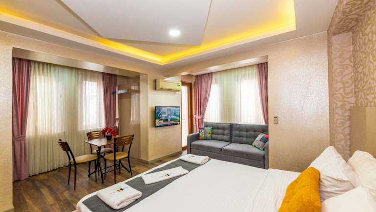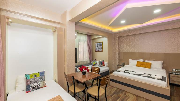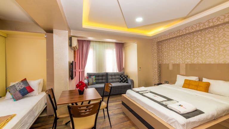Das Taxim Trend Suites befindet sich in einer idealen Lage, nur 3 Gehminuten vom Taksim-Platz entfernt. Hier finden Sie eine Vielzahl von Einkaufsmöglichkeiten, Restaurants und Bars. Die Istiklal Caddesi, eine der bekanntesten Einkaufsstraßen Istanbuls, liegt ebenfalls in der Nähe. Der historische Stadtteil Sultanahmet ist nur 5 km entfernt und der Flughafen Istanbul ist in 20 km erreichbar.