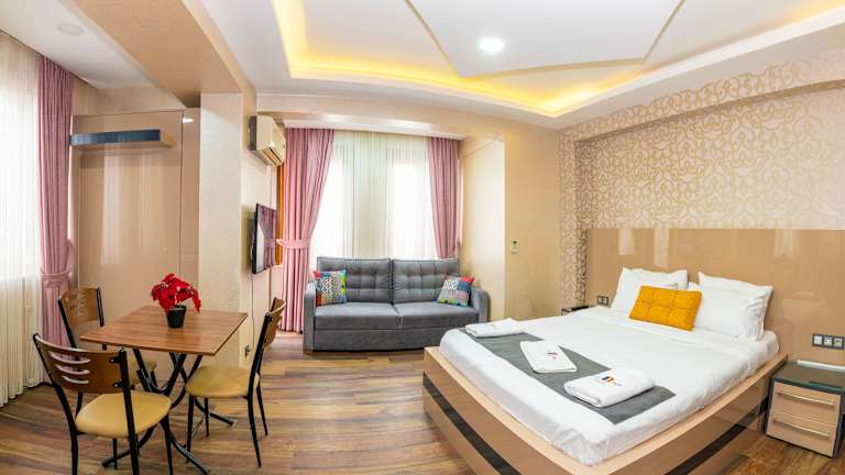 Das Taxim Trend Suites ist ein modernes Designhotel, nur wenige Gehminuten vom lebhaften Taksim-Platz entfernt. Die stilvollen Suiten verfügen über eine voll ausgestattete Küche, kostenfreies WLAN und eine 24-Stunden-Rezeption. Genießen Sie den Komfort und die Nähe zu den zahlreichen Restaurants, Bars und Geschäften der Istiklal Caddesi.