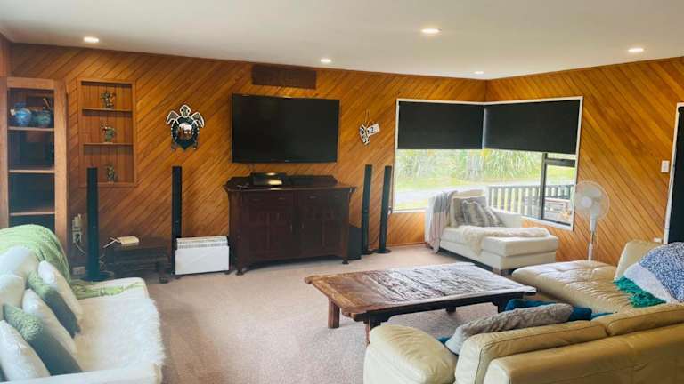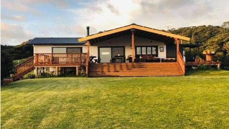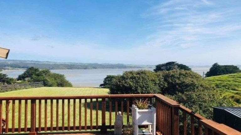 Die Unterkunft Te Papatapu Retreat ist in Raglan gelegen, umgeben von einer malerischen Landschaft und dem Meer.