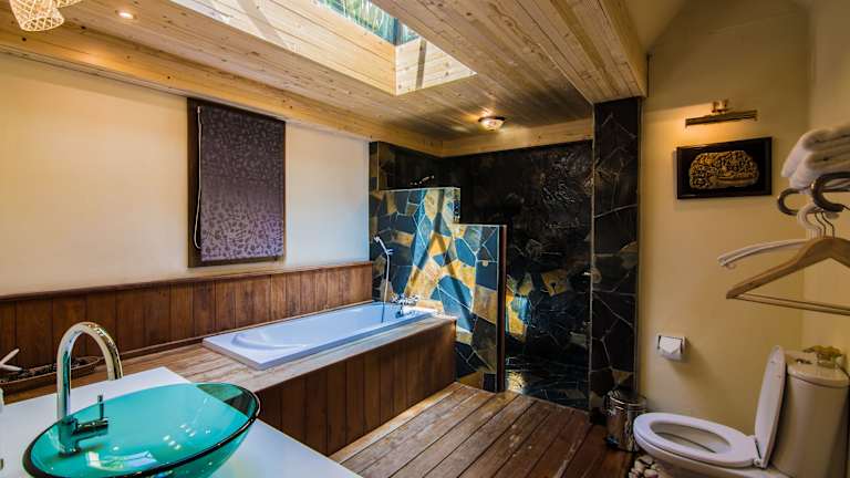 Die Zimmer in der Teakwood villa umfassen 4 Schlafzimmer, ein Wohnzimmer sowie eine gut ausgestattete Küche. Zu den Annehmlichkeiten gehören ein Satelliten-Flachbild-TV, Handtücher und Bettwäsche. Ein Badezimmer mit Dusche und Whirlpool sorgt zusätzlich für Bequemlichkeit.