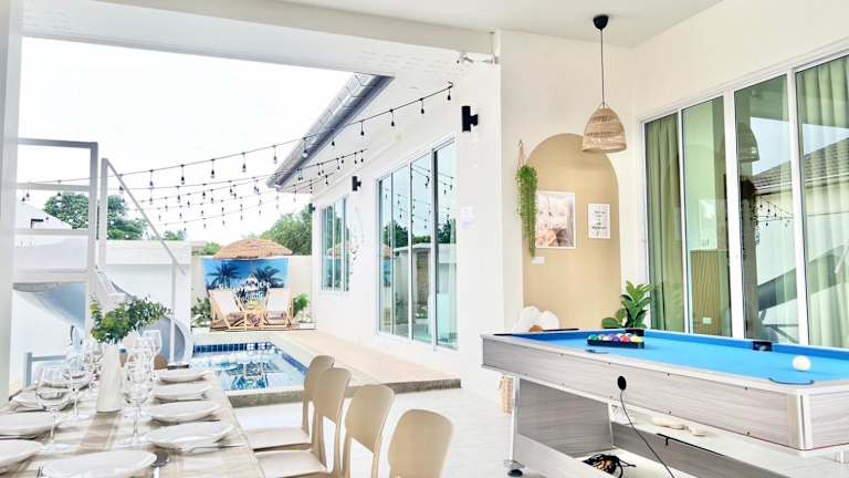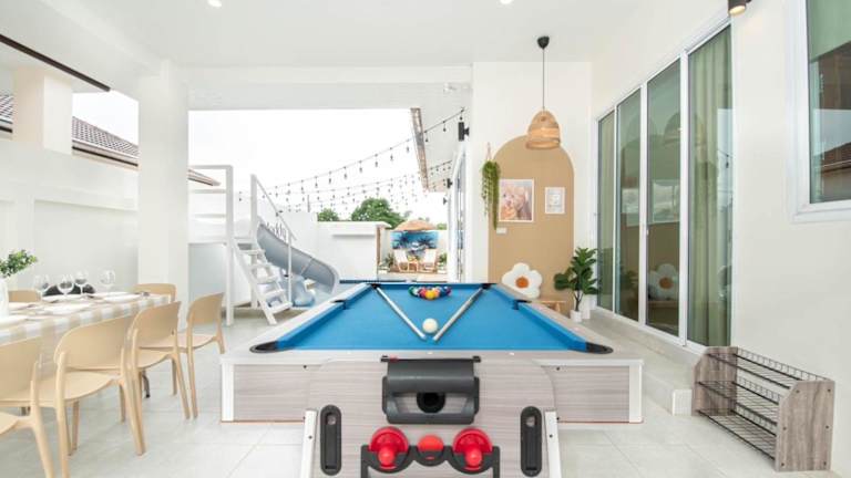Die Teddy House Cozy 3BD Poolvilla near Jomtien beach bietet eine heimelige Atmosphäre mit einem Aussenpool und einer Gemeinschaftslounge. Die Unterkunft verfügt über kostenfreies WLAN und ist ideal für Familien oder Gruppen, die einen erholsamen Aufenthalt suchen.