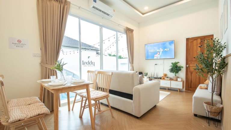 Die Unterkunft Teddy House Cozy 3BD Poolvilla befindet sich in Ban Huai Yai, weniger als 30 km vom Golfplatz Eastern Star Golf Course und 35 km vom Emerald Golf Resort entfernt. Der nächstgelegene Flughafen ist der Flughafen U-Tapao, welcher 31 km von der Unterkunft entfernt ist.