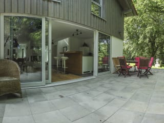 Hochwertig und komfortabel mit Naturmaterialien ausgestattetes , neues Haus umgeben von einem großen Garten mit kleinem Wäldchen, Bachlauf, Fischteich, Wiese . Es gibt mehrere Sitzgruppen im Freien, Terrassen, einen Feuerplatz, Slackline , Trampolin u.v.m. Große Teile des Gartens sind uneinsehbar und gewähren viel Privatsphäre.