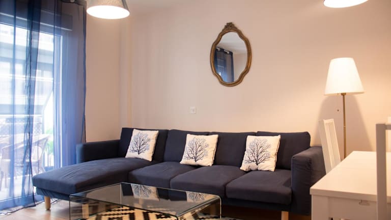 Die Ferienwohnung umfasst drei Schlafzimmer und zwei Badezimmer. Diese sind mit einem Bidet und einer Dusche ausgestattet. Die Küche ist mit einem Kühlschrank, einem Geschirrspüler und einem Ofen eingerichtet. Ein Wohnzimmer mit Sitz- und Essbereich sowie ein Blu-ray-Player sind ebenfalls vorhanden. Handtücher und Bettwäsche werden bereitgestellt.