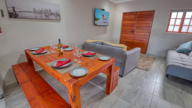 In der Tembo Guest Lodge gibt es ein Restaurant, das südafrikanische Küche anbietet. Auf Anfrage werden auch vegetarische Optionen angeboten.