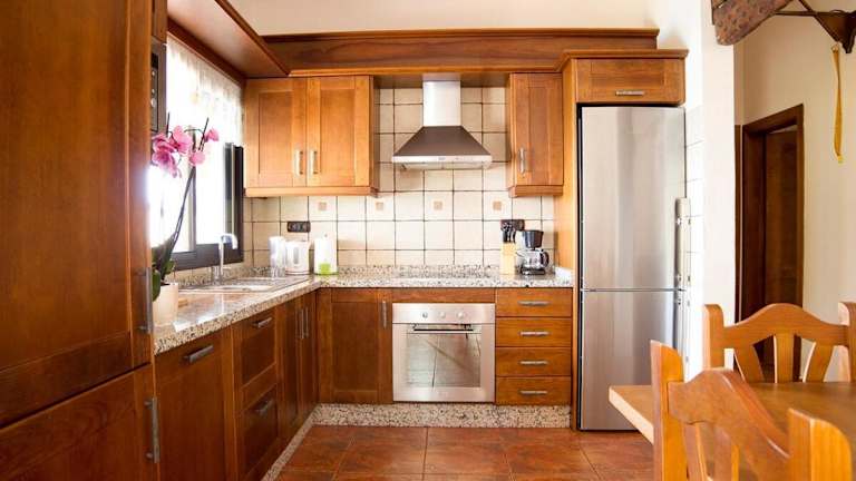 Es gibt eine voll ausgestattete Küche in der Unterkunft mit Kühlschrank, Geschirrspüler, Ofen, Mikrowelle, Herdplatte und Kaffeemaschine.
