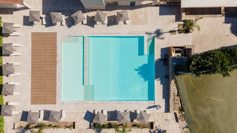 Entspannung & Freizeit Außenpool mit Sonnenschirmen und Liegen Ruhebereiche inmitten der Natur Sonnenterrasse / Solarium Erlebnisse Weinverkostungen Touren durch die Weinberge Picknicks zwischen den Reben Kochkurse zur Herstellung von Orecchiette Kulinarische und önogastronomische Erlebnisse Aktivitäten in und mit der Natur sowie der Region Sport & Aktivität Tennisplätze Kleine Fußballplätze Fahrradverleih Zusätzliche Services Parkplatz Touristische Informationen Unterstützung bei der Organisation von Erlebnissen und Aktivitäten in der Region Öffentliche und Partnerstrände in der Nähe Autovermietung auf Reservierung mit inkludiertem Transfer vom und zum Flughafen