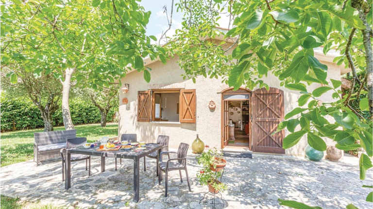 Die Unterkunft verfügt über zwei Schlafzimmer und bietet Platz für bis zu vier Personen. Die voll ausgestattete Küche ermöglicht eine autonome Verpflegung. Zur Ausstattung gehören Grillmöglichkeiten sowie Gartenmöbel.