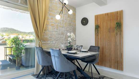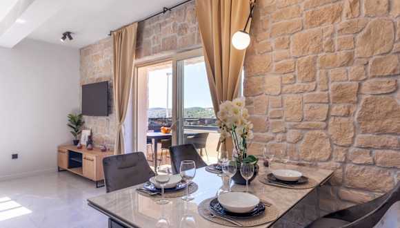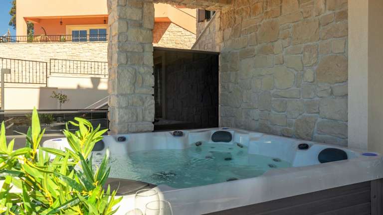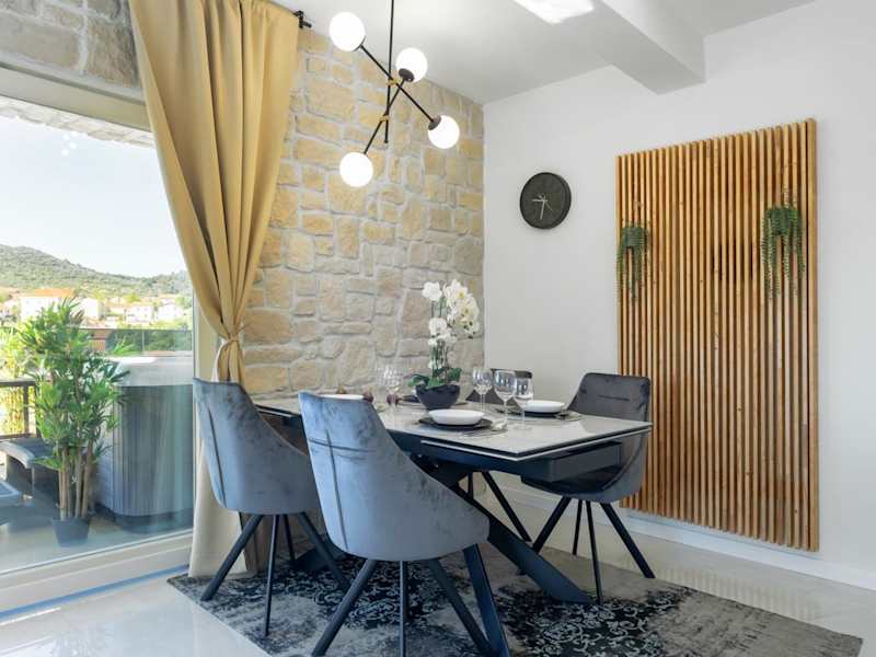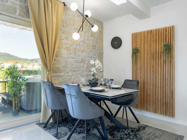 TEONA Luxury Apartment mit Whirlpool und Terrasse mit Meerblick bietet eine heimelige und einladende Atmosphäre. Die Ferienwohnung verfügt über eine Terrasse und einen Garten, ideal für entspannte Stunden im Freien.
