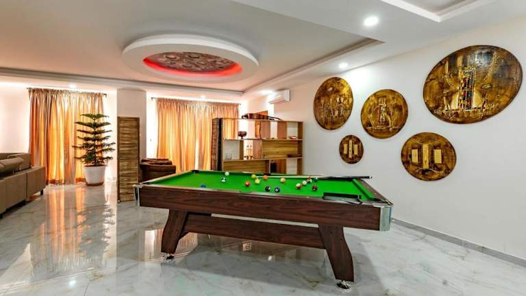 Die Unterkunft bietet ein Freizeitangebot mit Spielmöglichkeiten wie Billard und Dart. Zudem steht ein Wellnessbereich zur Verfügung, der zur Entspannung einlädt.