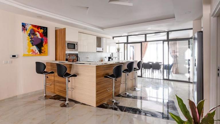 Die Ferienwohnung umfasst 5 Schlafzimmer, ein Wohnzimmer sowie eine voll ausgestattete Küche mit Kühlschrank und Kaffeemaschine. Es stehen 5 Badezimmer mit Dusche und kostenlosen Pflegeprodukten zur Verfügung. Auf Wunsch können Handtücher und Bettwäsche gegen Aufpreis bereitgestellt werden.