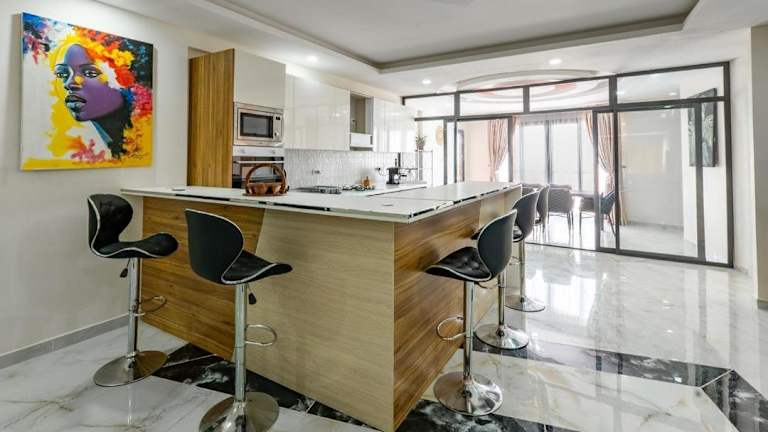 Die Unterkunft Teranga Roof-Top Appartement vue sur Mer ist in Dakar gelegen, nur 700 m vom Strand Ouakam und 900 m vom Monument de la Renaissance Africaine entfernt. Die Nähe zum Flughafen Dakar-Léopold Sédar Senghor, welcher lediglich 1 km entfernt ist, erleichtert die Anreise.