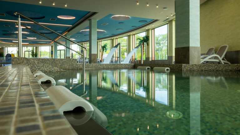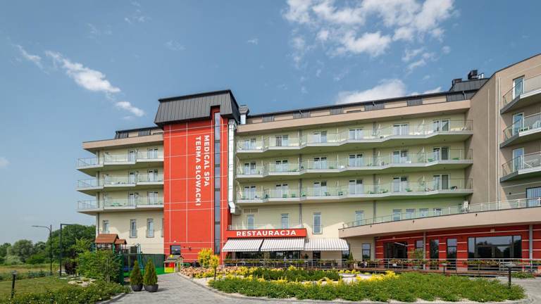 Das Terma Słowacki Resort Medical Spa bietet Übernachtungsmöglichkeiten in einem ansprechenden Ambiente. Das Resort verfügt über einen Aussenpool, einen Innenpool, eine Sauna und eine Terrasse. Die Einrichtung ist modern und einladend.