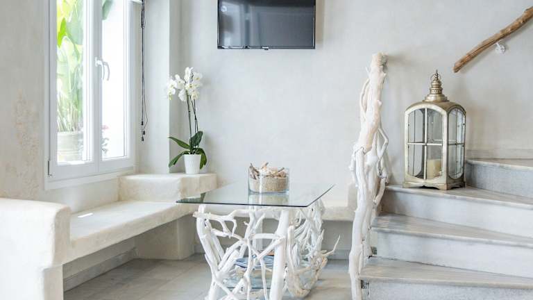 Das Terra Fos befindet sich zentral in Naxos, nur 600 m von der venezianischen Burg und 30 m vom Strand Agios Georgios entfernt. Tavernen und Geschäfte sind in 50 m erreichbar. Der Hafen von Naxos liegt etwa 10 Gehminuten entfernt, während der Flughafen Naxos 1 km entfernt ist.