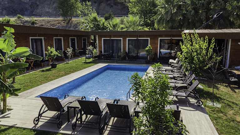 Das Terra Garden Hotel befindet sich in Kemer, in der Nähe des Strands Beldibi, nur 1,4 km entfernt. Die Umgebung bietet zahlreiche Freizeitmöglichkeiten und Sehenswürdigkeiten, darunter der Wasserpark Aqualand Antalya Dolphinland und das Antalya Museum, die beide in etwa 24 km erreichbar sind. Der nächste Flughafen ist der Flughafen Antalya, welcher 36 km entfernt liegt.