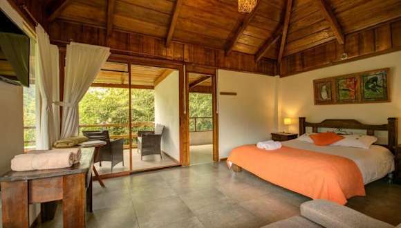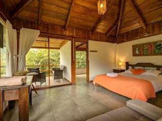 Die Bungalows in der Terrabambu Lodge sind mit Balkonen ausgestattet, die einen herrlichen Blick auf die umliegenden Berge bieten.