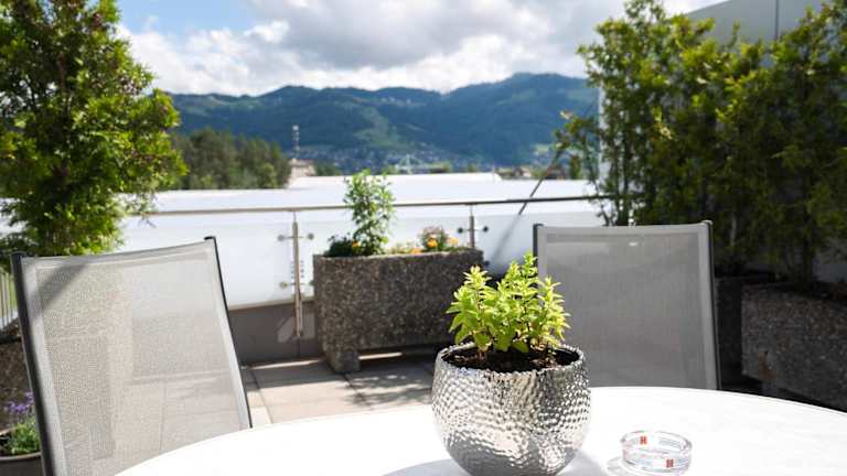 In der Umgebung der Unterkunft gibt es Möglichkeiten für Skifahren, Wandern, Velofahren, Windsurfen, Kanusport und Tauchen. Die Terrasse bietet einen schönen Bergblick.