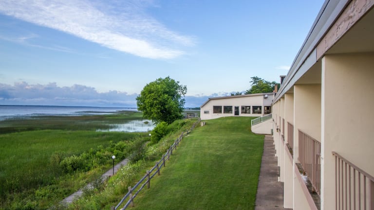 Das Terrace Bay Hotel liegt am Lake Michigan und bietet eine idyllische Lage mit direktem Seeblick. Die Umgebung ist einladend und ruhiger, ideal für entspannte Ferien.