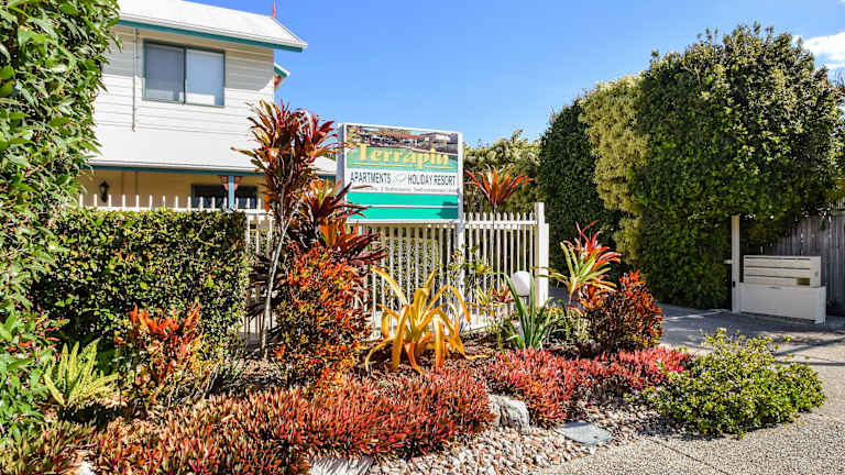 Die Terrapin Apartments bieten einen angenehmen Aufenthalt mit einem Garten, einem Pool und Grillmöglichkeiten in einer ruhigen Umgebung. Die Apartments verfügen über eine Klimaanlage, eine voll ausgestattete Küche sowie einen separaten Wohn- und Essbereich.
