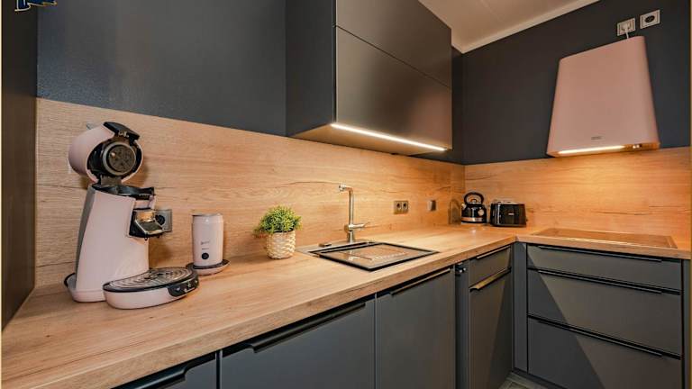 Die Ferienwohnung hat einen eigenen Balkon mit Gartenblick und umfasst ein Schlafzimmer sowie ein Wohnzimmer. Ausgestattet mit einem Flachbild-TV, einer gut ausgestatteten Küche mit Kühlschrank und Geschirrspüler sowie einem Badezimmer mit Dusche, bietet die Unterkunft für alle Gäste genügend Bequemlichkeit. WLAN ist im gesamten Gebäude kostenlos verfügbar.