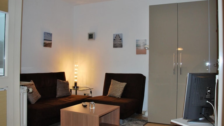 Die Ferienwohnung verfügt über ein Schlafzimmer, eine gut ausgestattete Küche mit Kühlschrank und Geschirrspüler sowie ein Badezimmer mit Dusche, Haartrockner und Waschmaschine. Zudem sind ein TV, ein DVD-Player und ein CD-Player vorhanden.