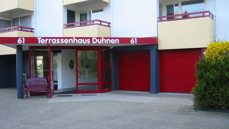Die Terrassenhaus Duhnen Wohnung 81 befindet sich in Duhnen, nur etwa 300 m vom Badestrand entfernt. In der Nähe befinden sich weitere Strände wie Badestrand Grimmershörn - Bucht in 2,7 km sowie Alte Liebe in 5,7 km Entfernung.