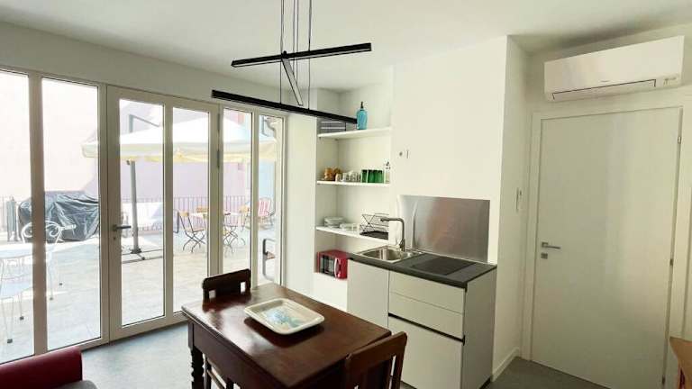 Die Ferienwohnung besteht aus einem Schlafzimmer, einem Wohnzimmer und einer voll ausgestatteten Küche, die mit einem Kühlschrank und einer Kaffeemaschine ausgestattet ist. Ein Badezimmer mit Bidet und Dusche ist ebenfalls vorhanden. Handtücher und Bettwäsche werden zur Verfügung gestellt.