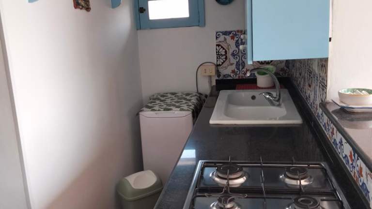 Die Ferienwohnung umfasst ein Schlafzimmer und ein Badezimmer. Zur Ausstattung gehören Bettwäsche, Handtücher, ein Flachbild-TV, ein Essbereich und eine voll ausgestattete Küche. Zudem gibt es eine Terrasse mit herrlichem Meerblick.