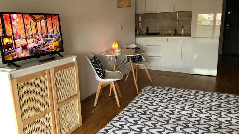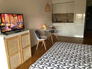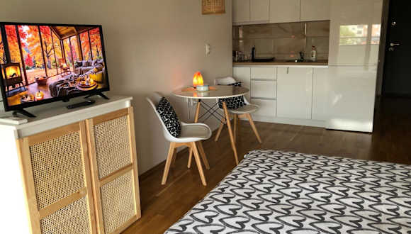 Die Ferienwohnung mit Klimaanlage hat ein Schlafzimmer und bietet Sitzplätze sowie einen Flachbild-TV. Eine Küchenzeile mit Kühlschrank ist ebenfalls vorhanden. Handtücher und Bettwäsche werden bereitgestellt.
