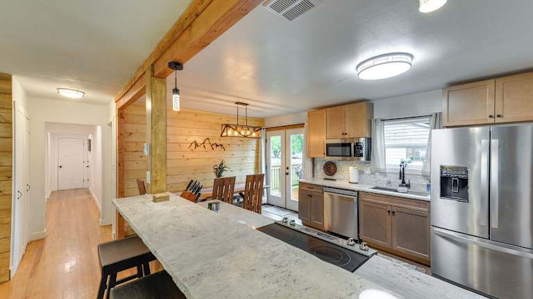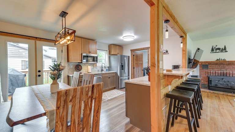 Teton Valley Getaway Fenced Yard, Grill bietet eine heimelige Atmosphäre mit einem eingezäunten Garten und einem Grill. Das Ferienhaus verfügt über eine voll ausgestattete Küche, die es den Gästen ermöglicht, eigene Mahlzeiten zuzubereiten.