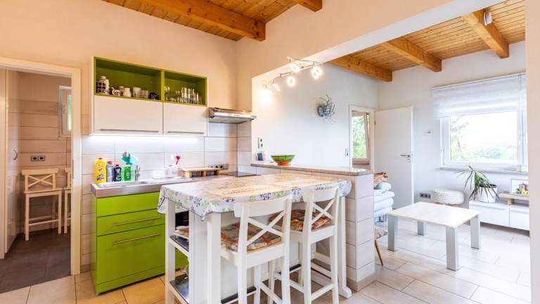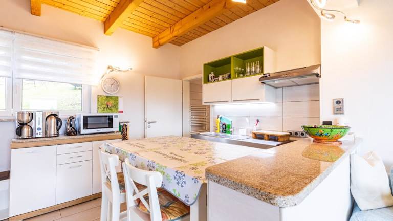 Das Ferienhaus bietet ein Schlafzimmer, ein Badezimmer, Bettwäsche, Handtücher, einen TV mit Satellitenkanälen sowie eine voll ausgestattete Küche. Auf der Terrasse geniessen die Gäste den Blick auf die Berge. Es steht ein Grill zur Verfügung.