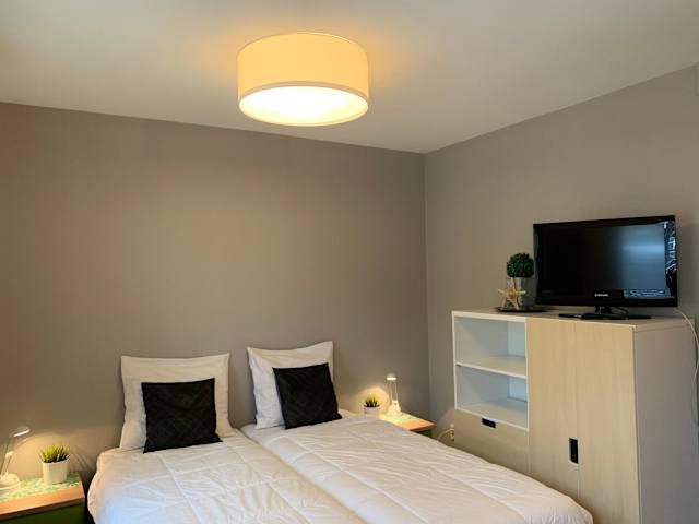 Die Ferienwohnung bietet ein Schlafzimmer, ein Badezimmer mit Dusche, eine gut ausgestattete Küche mit Kühlschrank und Mikrowelle sowie einen Flachbild-TV mit Kabelkanälen. Handtücher und Bettwäsche können gegen Aufpreis bereitgestellt werden. Die Unterkunft ist rauchfrei, und es sind keine Haustiere erlaubt.