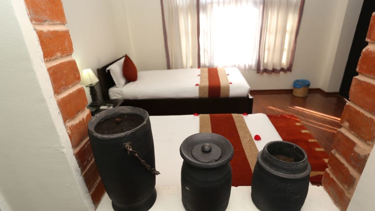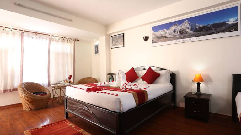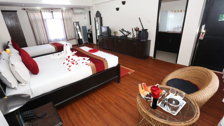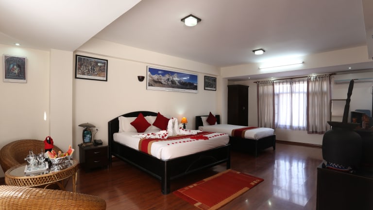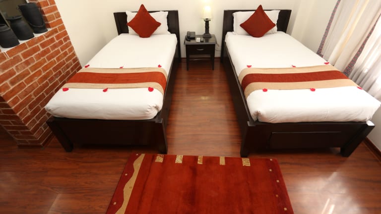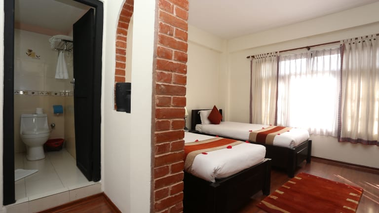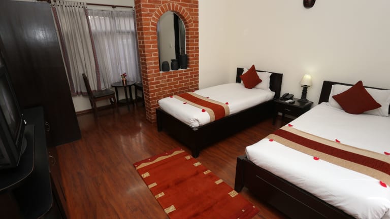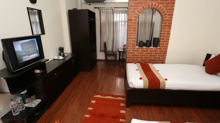 Die Zimmer im Thamel Eco Resort sind klimatisiert und verfügen über Parkettböden. Sie sind einfach eingerichtet und bieten Annehmlichkeiten wie einen Kleiderschrank, Kabel-TV, ein Telefon und einen Sitzbereich. Jedes Zimmer verfügt über ein eigenes Badezimmer mit Dusche.