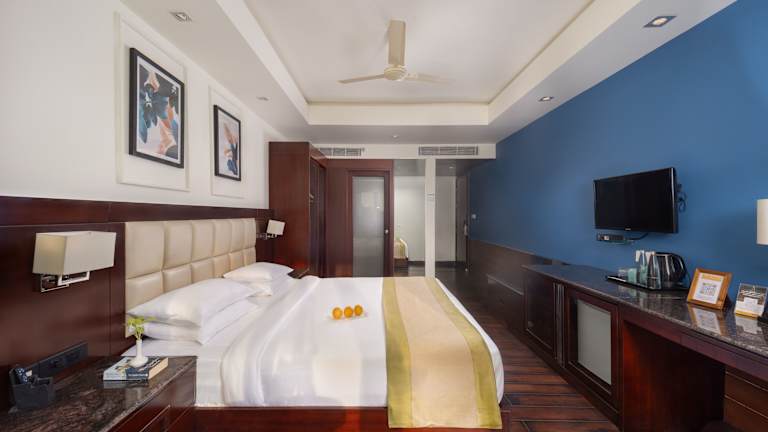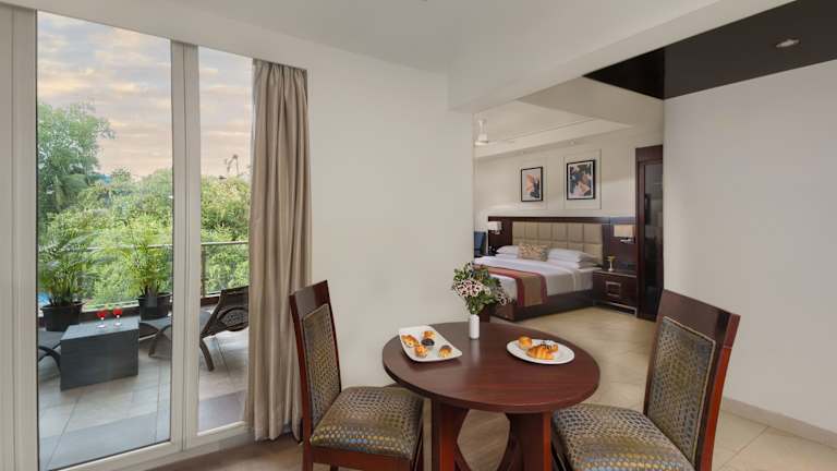 Das Hotel befindet sich in Candolim Beach, in der Nähe des Strandes und bietet eine gute Anbindung zu lokalen Sehenswürdigkeiten wie dem Fort Aguada, das ca. 3 km entfernt ist. Der internationale Flughafen Dabolim liegt etwa 45 km entfernt.