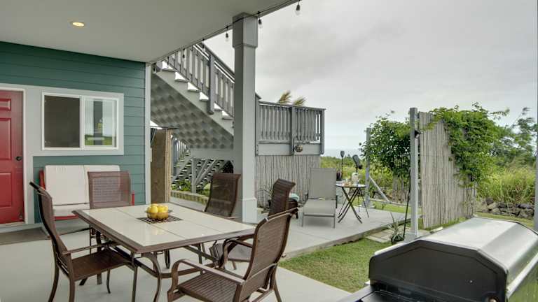 Die Unterkunft The Aloha Green House Retreat mit Meerblick befindet sich in Naalehu, etwa 101 km vom Flughafen Kona International at Keahole entfernt. Die Lage bietet einen wunderbaren Blick auf das Meer und ermöglicht den Gästen den Zugang zu einem heimeligen Garten und einer Terrasse.