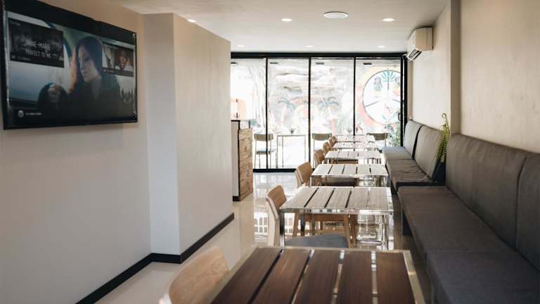 The Aqua Kohphangan bietet eine einladende Terrasse und eine gemeinschaftliche Lounge, wo Gäste entspannen können. Kostenloses Wifi ist in der gesamten Unterkunft verfügbar. Zusätzlich sind eine 24-Stunden-Sicherheitsüberwachung sowie ein Friseur-/Schönheitssalon vorhanden. Zur Verfügung stehen auch Parkiermöglichkeiten an der Strasse.